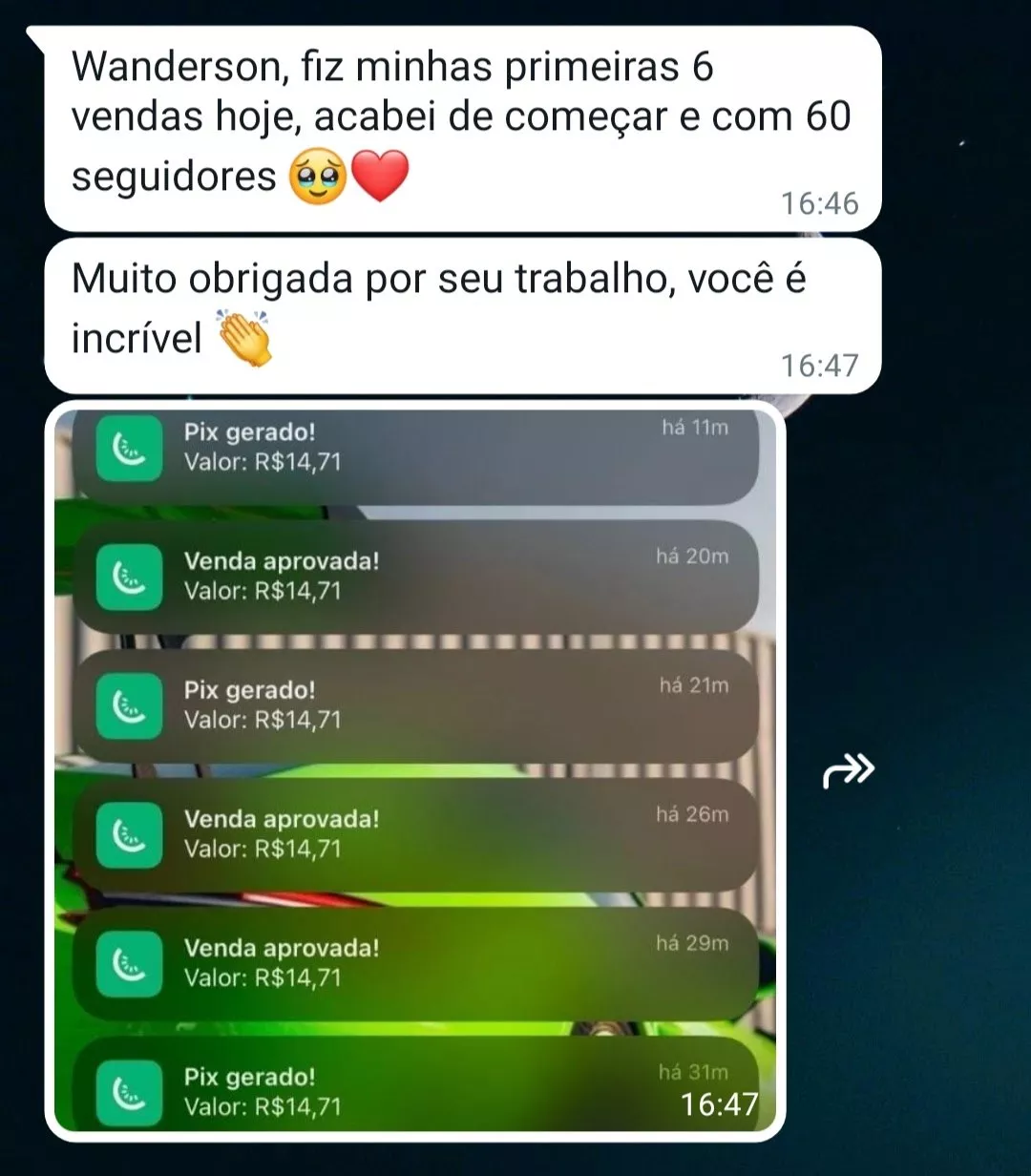 " Em 60 dias saí de 800 para 8.500 seguidores e fechei R$ 15.000 em vendas! "